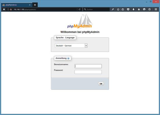 Danach können Sie phpMyAdmin unter http://192.168.1.100/phpmyadmin/: erreichen: