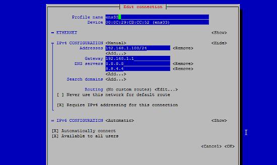 nano /etc/sysconfig/network-scripts/ifcfg-ens33
