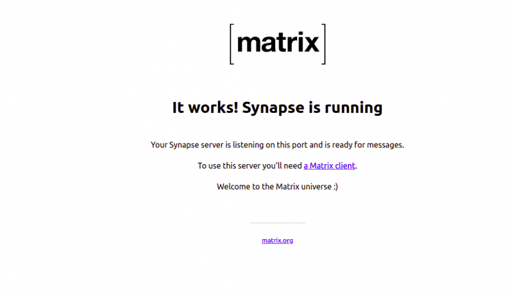 Du kannst nun die Installation von Matrix Synapse mit der URL https://matrix.linuxbuz.com in deinem Webbrowser überprüfen. Du solltest den folgenden Bildschirm sehen: