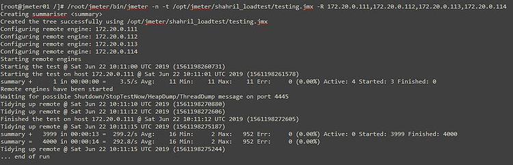 [root@jmeter01 /]# /root/jmeter/bin/jmeter -n -t /opt/jmeter/shahril_loadtest/testing.jmx -R 172.20.0.111,172.20.0.112,172.20.0.113,172.20.0.114