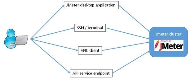 Die Verbindung zum JMeter-Cluster / JMeter-Dienst kann über hergestellt werden: