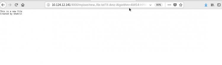 $ mc config host add myminio http://10.124.12.141:9000 shahril shahril123