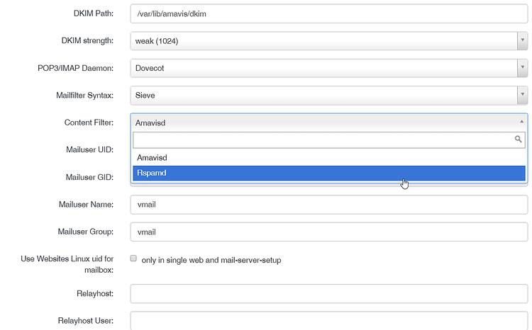 ISPConfig wurde so umkonfiguriert, dass Rspamd anstelle von Amavis zum Scannen nach Spam-E-Mails verwendet wird. Rspamd wird auch für Dkim Signing verwendet.