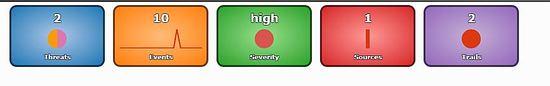 Im oberen Teil des Frontends befindet sich eine verschiebbare Zeitleiste, die nach dem Klicken auf die aktuelle Datumsbezeichnung und/oder das Kalendersymbol aktiviert wird. Der mittlere Teil enthält eine Zusammenfassung der angezeigten Ereignisse. Das Feld „Ereignisse“ stellt die Gesamtzahl der Ereignisse in einem ausgewählten 24-Stunden-Zeitraum dar, wobei verschiedene Farben verschiedene Arten von Ereignissen wie IP-basierte Ereignisse, DNS-basierte Ereignisse und URL-basierte Ereignisse repräsentieren. Klicken Sie auf die Kästchen, um eine detailliertere Darstellung der einzelnen Grafiken zu erhalten.
