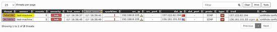 Wie unten gezeigt, werden beide Angriffe (Ping an eine bösartige IP-Adresse) auch im Frontend angezeigt.