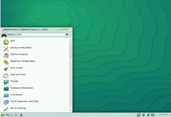 Öffne das Yast Dienstprogramm wie unten gezeigt.