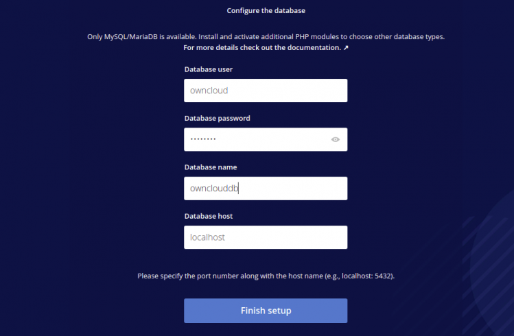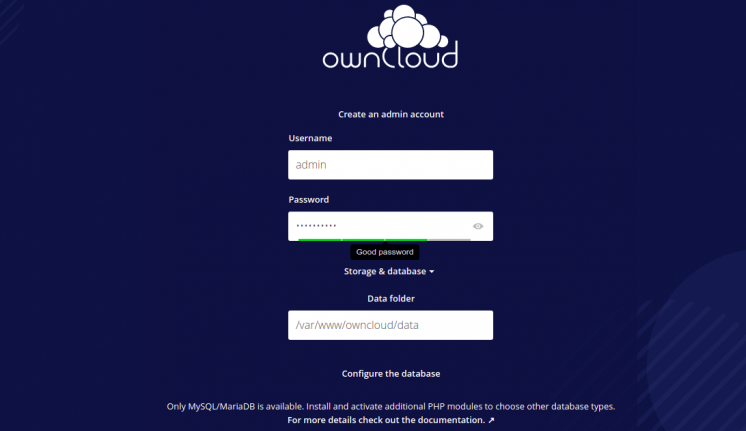 OwnCloud verwendet MariaDB als Datenbank-Backend. Daher musst du eine Datenbank und einen Benutzer für OwnCloud erstellen.