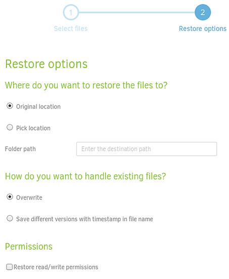 Wählen Sie die Wiederherstellungsdateien oder -ordner und die Wiederherstellungsoptionen aus: