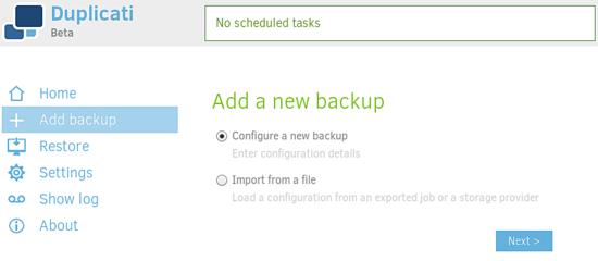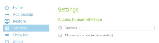 Standardmäßig hört Duplicati nur auf dem lokalen Host, und das ist auch so gedacht. Es beinhaltet jedoch die Möglichkeit, ein Passwort hinzuzufügen und vom Netzwerk aus zugänglich zu sein: