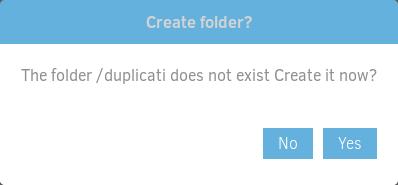 Klicken Sie auf „Verbindung testen“. Beim Testen der Verbindung werden Sie aufgefordert, den Ordner zu erstellen, falls er nicht existiert: