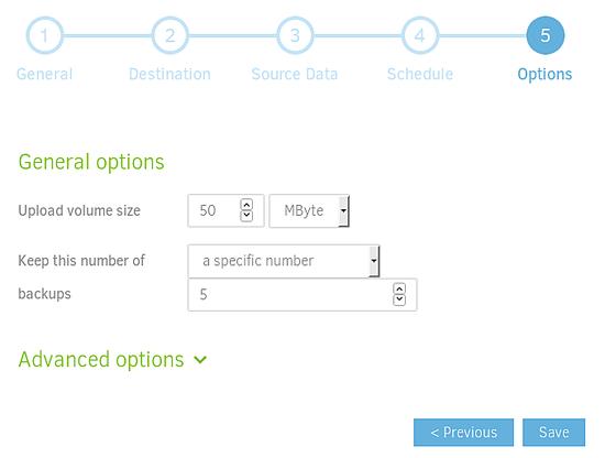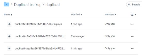 Die Größe der Blöcke wird diejenige sein, die in der Option Upload volume size angegeben ist. Die Dateien werden komprimiert und mit der zuvor festgelegten Passphrase verschlüsselt.