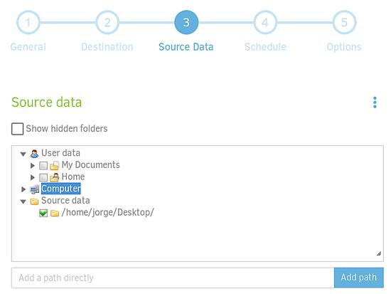 Wählen Sie die zu sichernden Quelldateien aus. Ich werde für dieses Beispiel nur den Ordner Desktop auswählen: