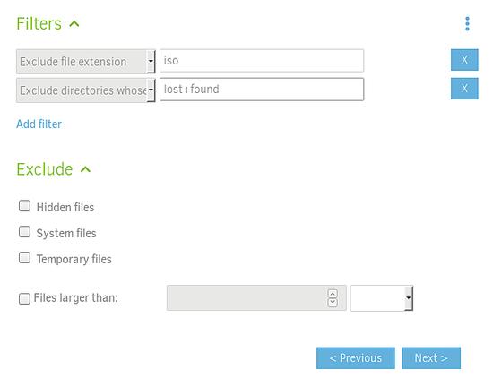 Geben Sie Filter und Ausschlüsse an, falls erforderlich: