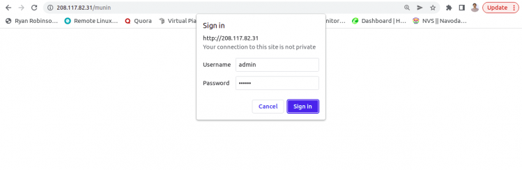 Jetzt ist Munin installiert und mit dem Apache-Webserver konfiguriert. Öffne nun deinen Webbrowser und rufe die Munin-Weboberfläche über die URL http://your-server-ip/munin auf. Du wirst auf die Munin-Anmeldeseite weitergeleitet: