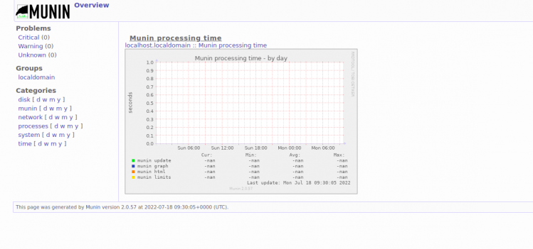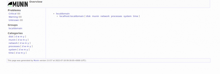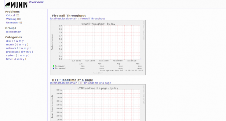 Gib deinen Admin-Benutzernamen und dein Passwort ein und klicke auf die Schaltfläche “ Anmelden . Auf der folgenden Seite solltest du das Munin-Dashboard sehen: