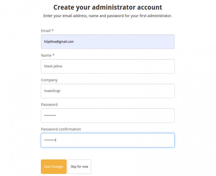 Gib die Daten deines SMTP-Servers ein oder klicke auf die Schaltfläche Jetzt überspringen. Du solltest den folgenden Bildschirm sehen: