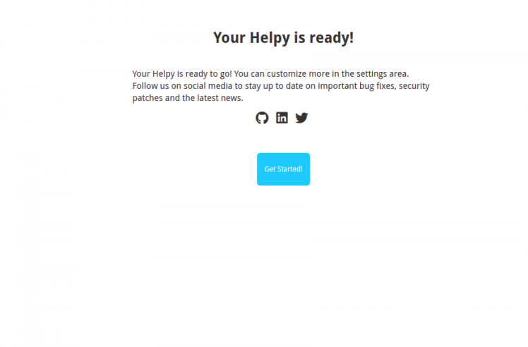 Öffne nun deinen Webbrowser und rufe das Helpy-Webinterface über die URL http://your-server-ip auf. Du solltest den folgenden Bildschirm sehen: