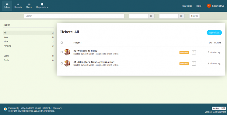 Helpy ist eine kostenlose, quelloffene und moderne Helpdesk-Kundensupport-Anwendung, die deinen Kunden ein heroisches Erlebnis bietet. Sie ist in Ruby on Rails geschrieben und lässt sich leicht in deine Anwendung und eingehende E-Mails über Sendgrid, Mandrill, Mailgun usw. integrieren. Helpy funktioniert standardmäßig auf allen Geräten, so dass du deine Kunden jederzeit und überall mit schnellen Antworten erfreuen kannst. Es verfügt über eine erweiterte Suchoption, die dir hilft, Tickets oder Kunden zu filtern und zu finden, wenn du Tausende hast.