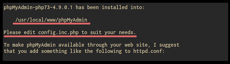 Danach gehst du in das Verzeichnis „/usr/local/www/phpMyAdmin/“ und kopierst die Beispielkonfiguration in die Datei „config.inc.php“.