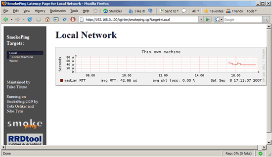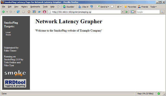 Öffne nun einen Web Browser und gehe zu http://www.example.com/cgi-bin/smokeping.cgi. Das ist die Startseite: