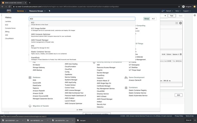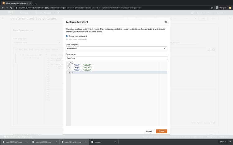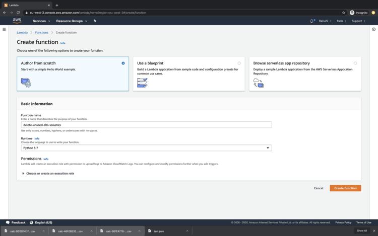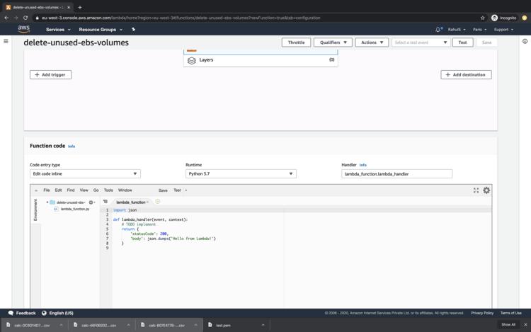 - Erstelle eine Lambda-Funktion, um ungenutzte EBS-Volumes zu löschen.