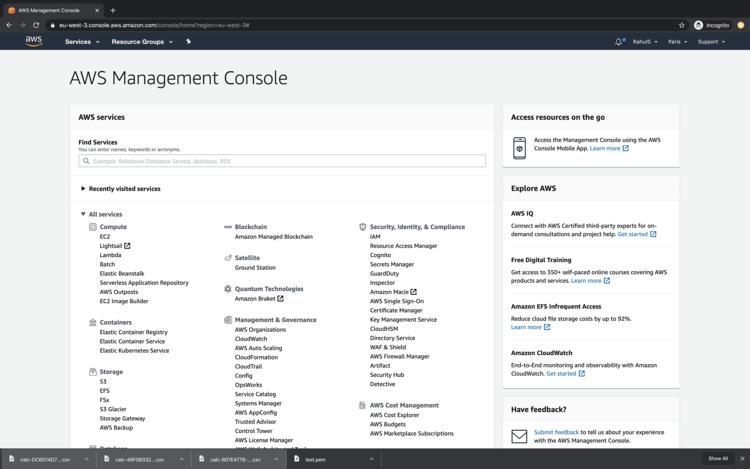 Sobald wir uns erfolgreich bei AWS angemeldet haben, sehen wir die Hauptkonsole mit allen aufgelisteten Services.