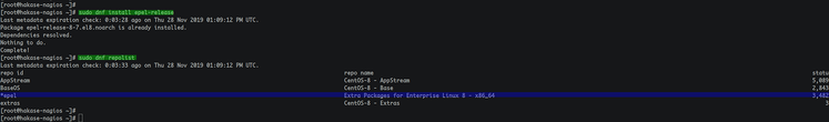 sudo dnf install nagios-plugins nrpe nagios-plugins-nrpe