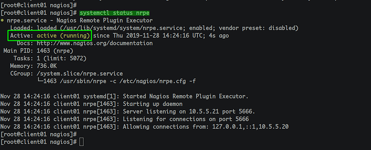 Installiere auf dem System „client01“ den NRPE-Server mit dem folgenden Befehl.