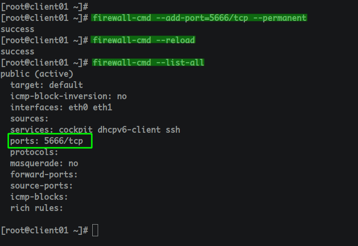Als Nächstes fügst du den nrpe-Port zur Firewalld hinzu und lädst die Firewalld-Konfiguration neu.