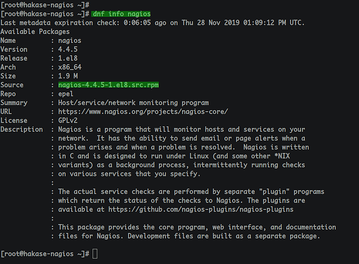 Installiere „nagios“ mit dem unten stehenden dnf-Befehl.