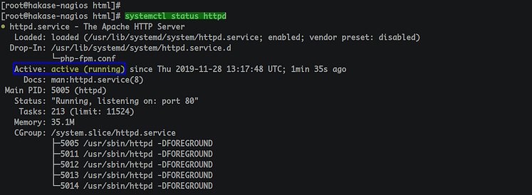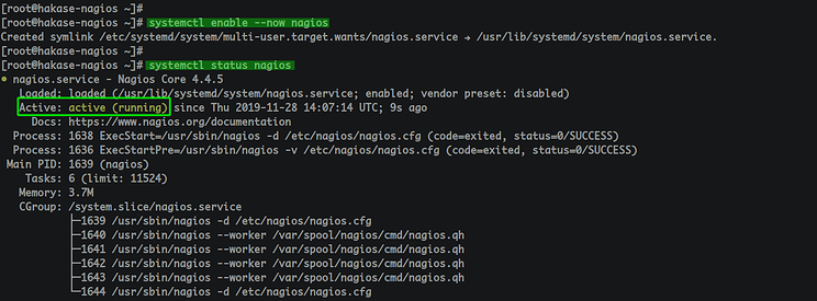 Du wirst sehen, dass der Nagios-Dienst aktiv ist und läuft.