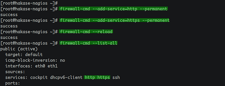 Jetzt hast du die http- und https-Dienste zur Firewalld hinzugefügt. Dadurch kann der Nagios Server über den Webbrowser erreicht werden.
