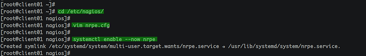 Damit hast du die NRPE-Konfiguration auf dem Host-Monitor „client01“ abgeschlossen.