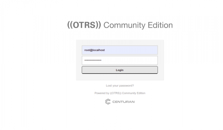 Klicke auf die angegebene URL. Du wirst zum OTRS-Anmeldebildschirm weitergeleitet: