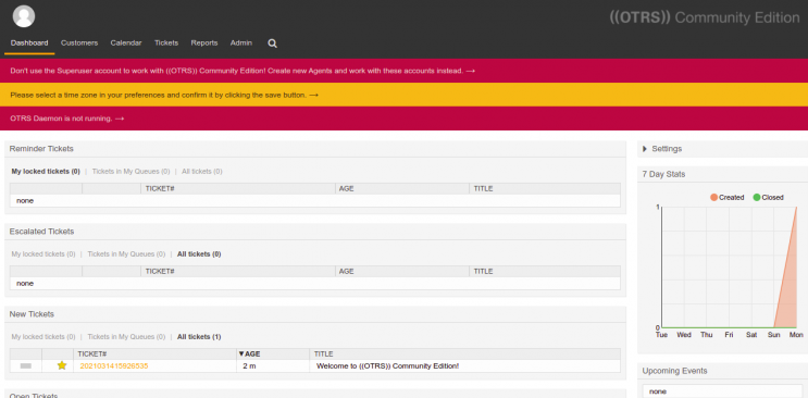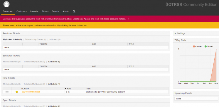Aktualisiere nun den OTRS-Bildschirm. Du solltest sehen, dass der Fehler jetzt verschwunden ist.