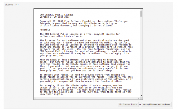 Lies die Lizenz und klicke auf die Schaltfläche “ Lizenz akzeptieren und fortfahren“. Du solltest den Bildschirm zur Datenbankauswahl sehen: