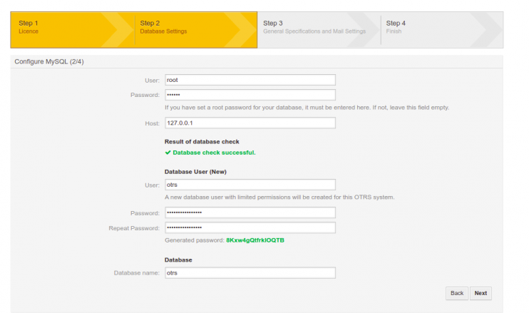 Wähle deine Datenbank aus und klicke auf die Schaltfläche Weiter. Du solltest den Bildschirm für die MySQL-Konfiguration sehen: