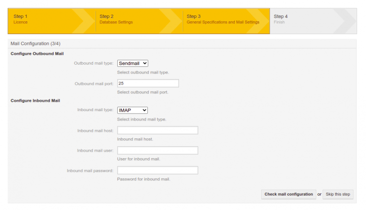 Lege deine gewünschten Einstellungen fest und klicke auf die Schaltfläche Weiter. Du solltest den Bildschirm für die E-Mail-Konfiguration sehen: