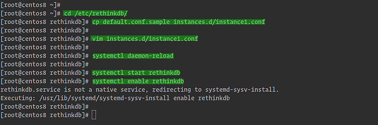 cd /etc/rethinkdb/ cp default.conf.sample instances.d/instance1.conf