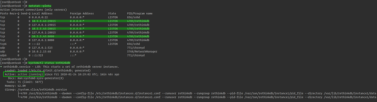 Der RethinkDB-Dienst ist auf dem CentOS 8-Server eingerichtet und läuft. Überprüfe ihn mit dem unten stehenden Befehl.