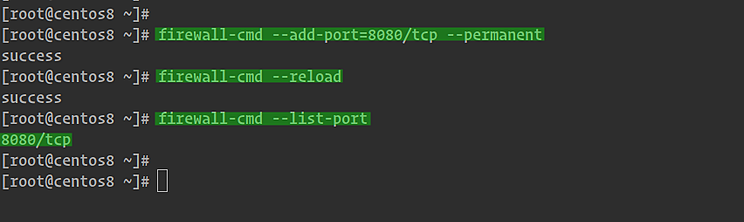 Damit hast du den Port „8080“ zur Firewalld hinzugefügt.