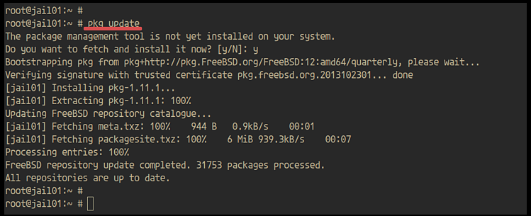Aktualisiere zunächst die Binärpakete in der Jail mit dem unten stehenden pkg-Befehl.