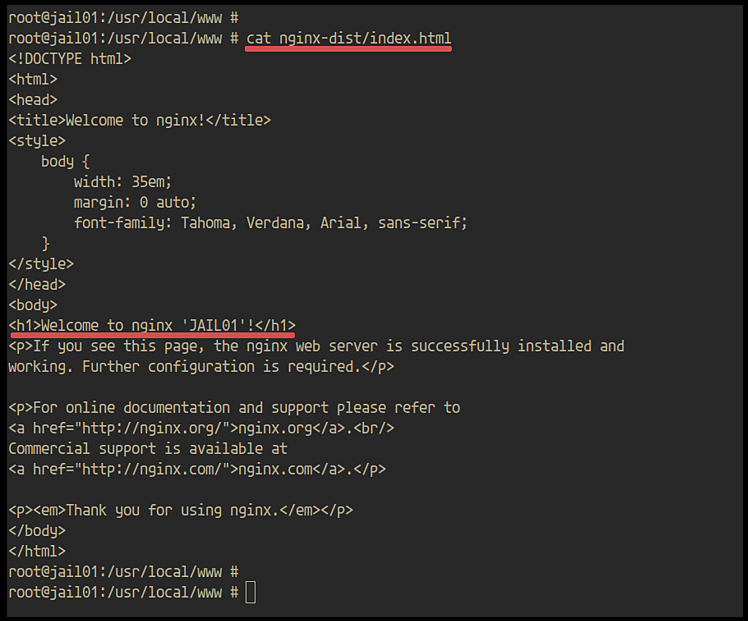Als Nächstes ändern wir die Standardseite index.html auf der „jail01“.