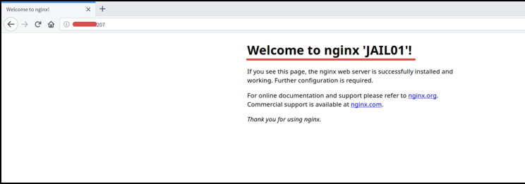 Du erhältst die nginx index.html Seite innerhalb der „jail01“.