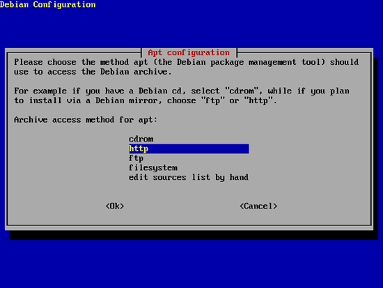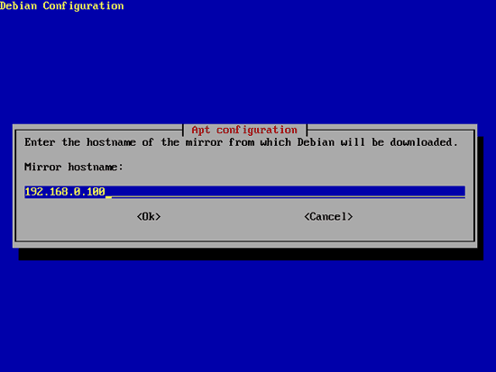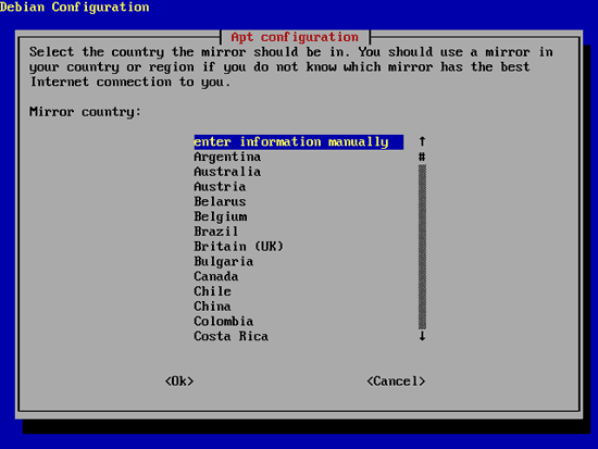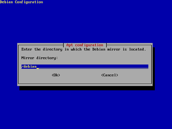 Wenn Du ein frisch aufgesetztes Debian Sarge oder Ubuntu Edgy Eft System installierst, bestimme Deinen lokalen Spiegel wie folgt, wenn der Installer fragt, welche Paketdatenbank Du verwenden möchtest:
