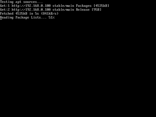 Danach wird der Installer Deinen lokalen Spiegel verwenden, um das System zu installieren: