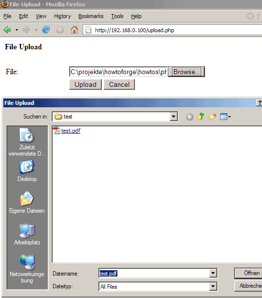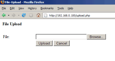 Lass es uns nun testen. Gib http://192.168.0.100/upload.php in Deinem Browser ein. Dies solltest Du nun sehen: