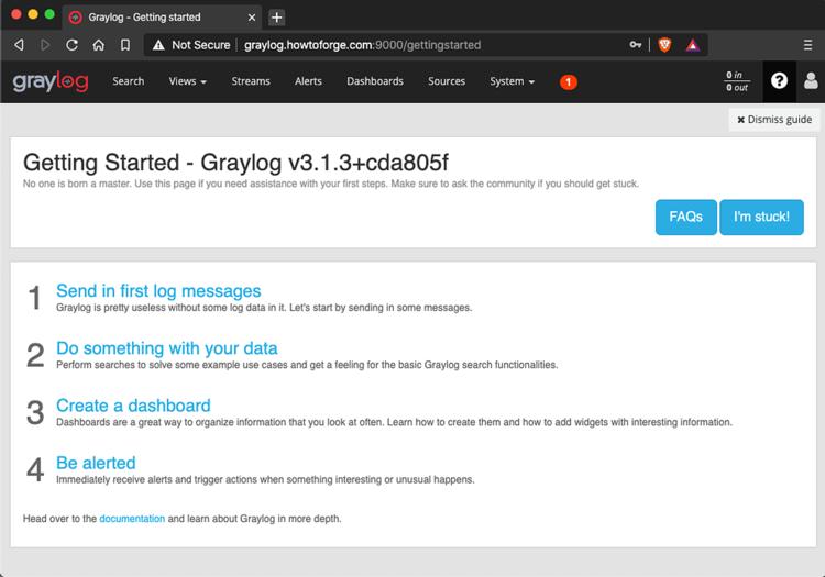 Nach der Anmeldung sollten wir die folgende Graylog-Seite sehen: